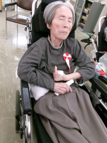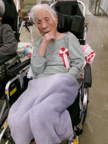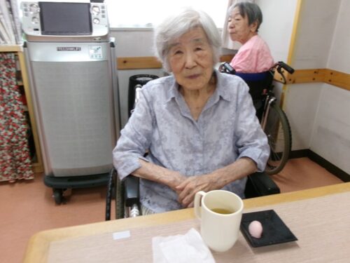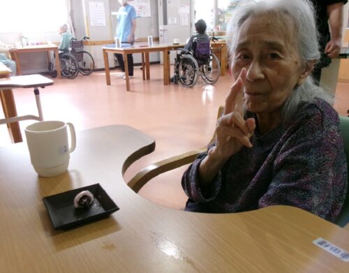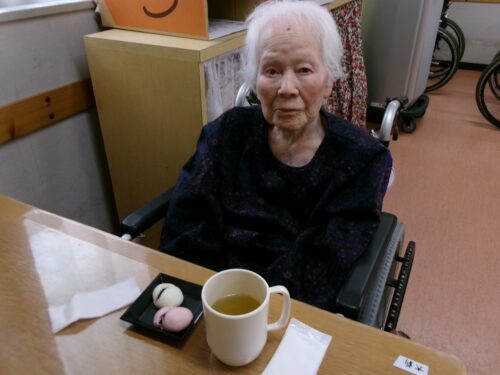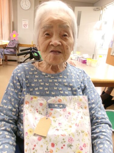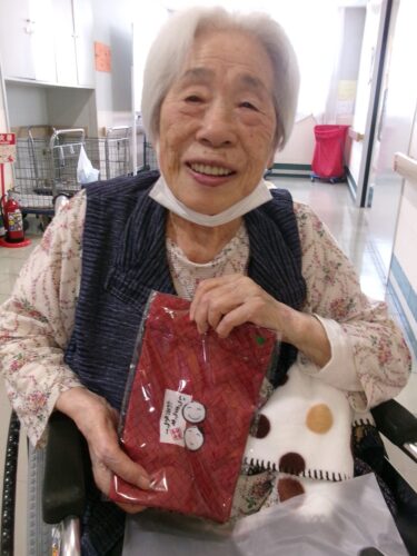 敬老会のあとは、お祝いのプレゼントタイムとおやつです。