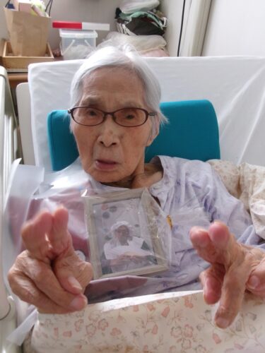 そして、プレゼントは写真と(孫の手 or 巾着 or クッション)でした。
