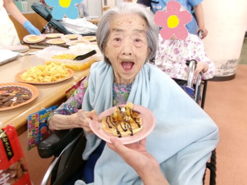 お誕生日をお祝いした後は、楽しいホットケーキパーティー🥞