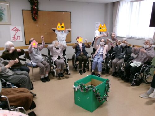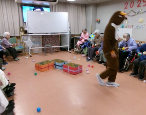 ウォーミングアップのあとはクリスマス仕様の玉入れゲーム☆