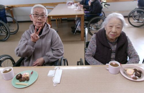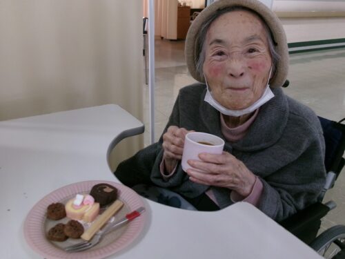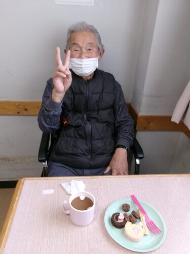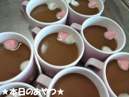2月はバレンタインもあったので、おやつと飲み物のコーヒーにはハート型のマシュマロが乗せてありました♥